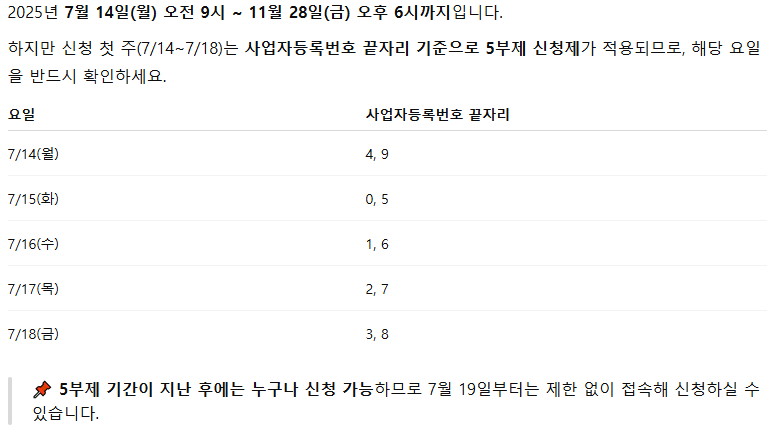 2025년 기준 소상공인 1인당 최대 50만 원 상당의 크레딧을 발급한 카드에 자동 충전해주는 방식으로 진행되며, 지원금은 12월 31일까지 사용 가능합니다.
